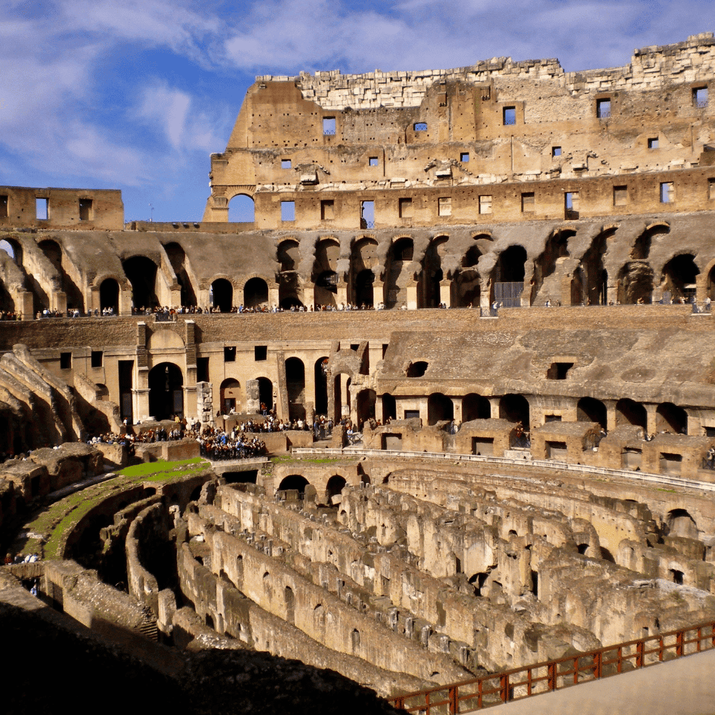 Your journey begins inside the iconic Colosseum, a masterpiece of Roman architecture and the most famous amphitheater in the world.